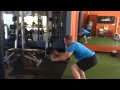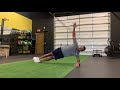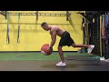 Getting into plank position on a bench, keeping hips square and shoulder square, row a kettle bell or dumbbell while maintaining tension in the core.