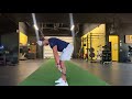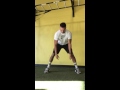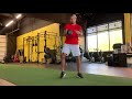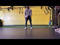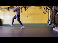 As you are traveling forward, bring your opposite knee up towards your chest and try to connect with your opposite elbow. Try to maintain the down leg straight as possible.