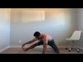 Bring your knee up high and grab with the opposite hand. Feel like you are pulling that leg in, as you do rotate the opposite arm and turn the head with it to complete the "Stretch."