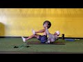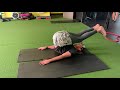 Starting on all fours, sit back on heels to feel stable. Rotate the lower arm under trying to get that shoulder to the floor. Rotate the other arm up having your head turn with it. If to difficult, start with the under rotation.