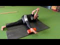 Driving one side leg into end range flexion, hold this position as you rotate over that side. You do not have to use ball or any weight, and if a box is available this is the best way to feel end range.
