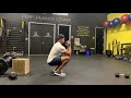 Start by sitting on the box, lift your feet from the ground, right when your feet touch the ground perform a vertical jump reach the ball towards the ceiling. Make sure you land soft and reset back on the box.